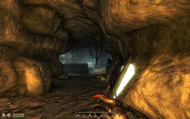 My first duty in the fighters guild given to me by the head of the fighters guild in Chorrol was to figure out why a certain fighters guild member has not reported back with a journal he was supposed to fetch. He was sent to Skingrad, so that's where I was sent. I found him in the local inn and he expressed how scared he was to do the task given to him, because the journal was set in a very dangerous cave. I rolled my eyes, thinking this guys a jerk for joining a guild whose jobs he can't even do.. but played nice with him. I felt sorry because he did look a little bit like a wimp and expressed he has a family to think of. I offered to go get the journal for him "Look, do you want me to get the journal for you?" and he said yes. Thus, I did so.
